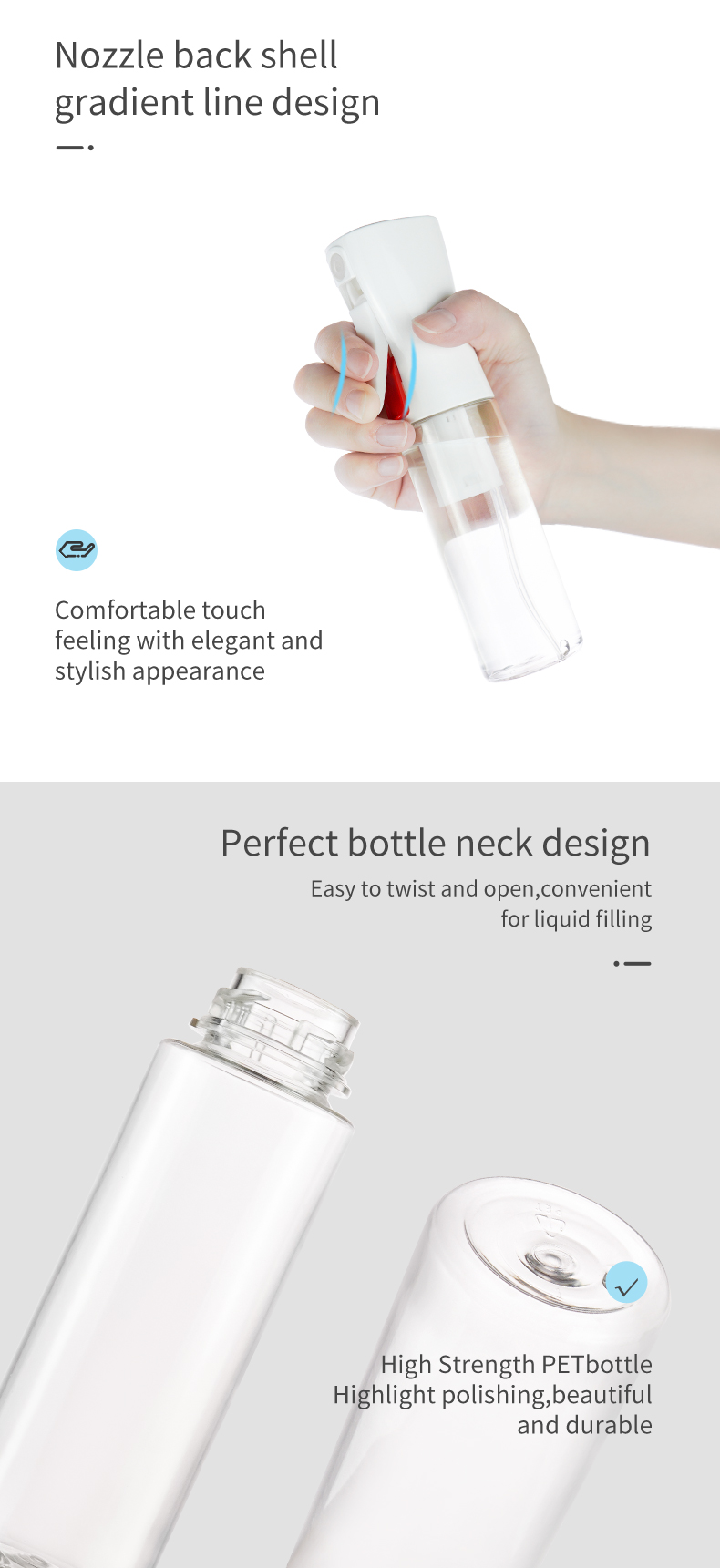 Product Name: | 2025 New 80ml 100ml 6oz Plastic Multi-functional Beauty Hair Continuous Spray Bottle Portable Fine Mist Travel Spray Bottle | ||